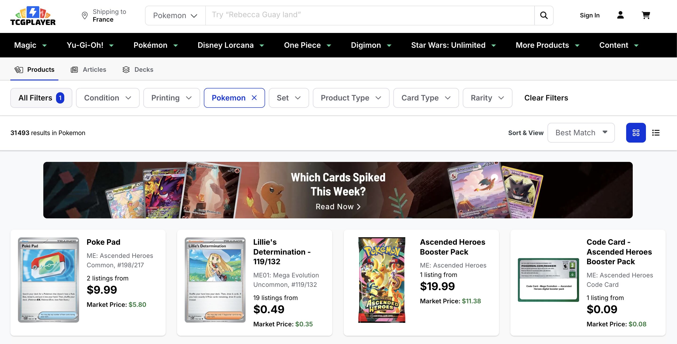 - Set name — Base Set, Scarlet & Violet, Paldean Fates, etc.